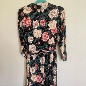 Torrid Floral Challis Shirtdress in NWT condition. Beautiful dark floral print, shirtdress style, collar, midi length, stretch woven fabric, button front, tie belt. Size 2. No flaws.