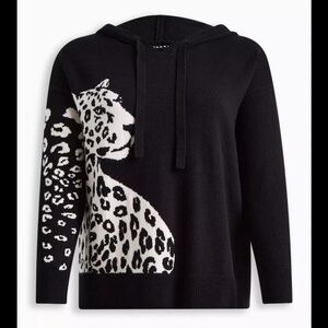 Torrid Black and White Crew Neck Sweater with Leopard Graphic