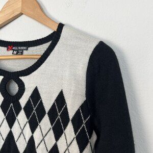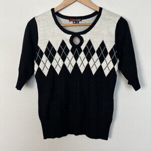 Hell Bunny Retro Argyle Diamond Short Sleeve Sweater Pinup Classic Size Medium