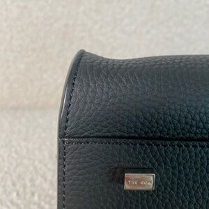 Authentic The Row Black Matte Grained Margaux 15 Leather Top-Handle Bag