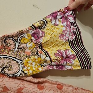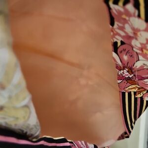 Belongsci pink v neck floral dress with elbow length sleeve. NWT. Has pink lining. Pit to pit is 20.5 and length is 36 inches.
