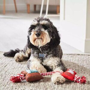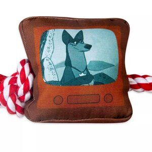 A stack of ''pawsitively adorable pups'' from Disney's canine classic One Hundred and One Dalmatians try to watch their favourite TV show Thunderbolt on this fun pet pull toy. With its red and white striped rope design and plush squeakers, your own playful four-legged friend will love getting their teeth into it.
