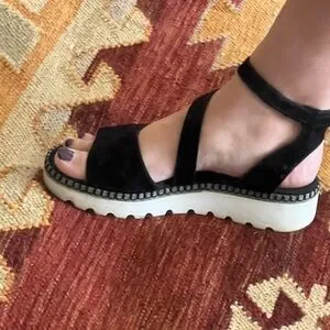 Gabor Comfort Walking Sandals Black Wedge 38
