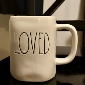 Enjoy your favorite beverage in this stylish white ceramic mug featuring a 'Loved' design. Perfect for adding a touch of warmth to your dining experience.