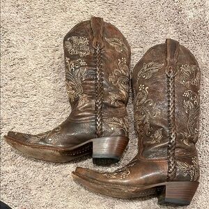 Stylish brown western boots with intricate embroidery. Snip toe. Stunning with jeans, a skirt or shorts!! Perfect for a country look. Worn a handful of times at most. Excellent used condition for your next rodeo season!