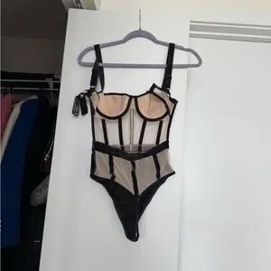 Victoria's Secret Elegant Black and Cream Bodysuit