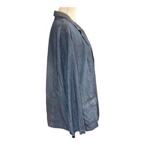 J JILL Womens 2X Denim Chambray 2 Button Blazer Pockets Light Blue Wash