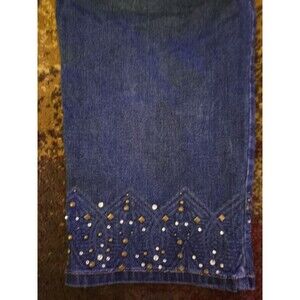 BElevate your denim game with these stylish Capei Jean's from est 1946 denim. The blue color and cotton blend material make them a perfect addition to your wardrobe. The rhinestone accents on the leg add a touch of glamour to the casual look.