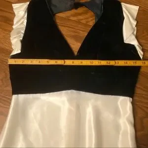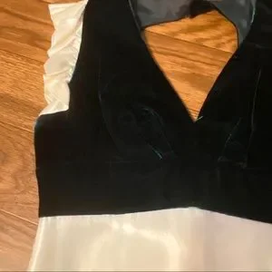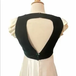 Gorgeous gown featuring a green velvet top and cream colored satin skirt
