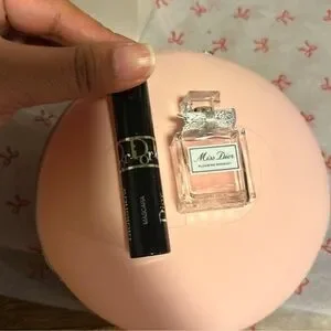 Amazing pink CD beauty pouch in silicone with gorgeous chain! Bundle includes lash transformation with Dior's Iconic Mascara, featuring a chic pink and black design. This mascara delivers exceptional volume and length, ensuring your lashes stand out with elegance and sophistication. Perfect for creating a bold, dramatic look that lasts all day- 0.13 Fl oz. Includes Miss Dior Blooming Bouquet in 5ml size as shown in pics.