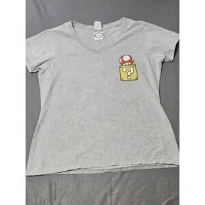Vtg Official Nintendo Shirt Womens Extra Large Gray Mushroom Mystery Box V Neck. Condition is Pre-owned - Good. Shipped with USPS Ground Advantage.