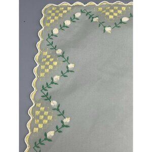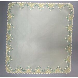 Sheer Hanky Yellow White Rose Rolled Hem Bridal Handkerchief Square 14" Delicate