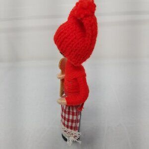 Anne Beate 1994 Cook with spoon Yarn Wrap Dolls Denmark Red Winter Hats 4" B174