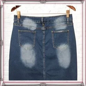• Denim skirt, jean skirt, distressed, fading, casual, comfortable, stretch denim, retro, 90s, boho, versatile, essentials, effortless, transitional, preppy, chic, grunge, punk, goth, emo, shabby chic