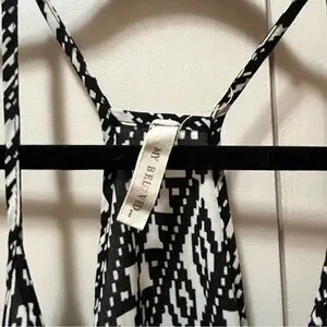 This striking black and white camisole dress from My Beloved features a design that adds a modern twist to its classic sleeveless style. The bold geometric and abstract patterns create a captivating visual appeal, making it a standout piece for any occasion. Crafted from a lightweight fabric, it drapes beautifully for a comfortable and elegant fit.