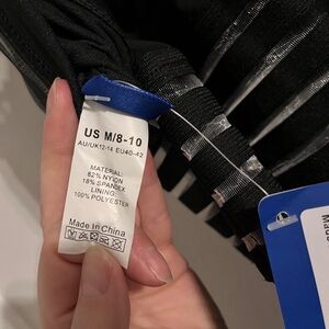 Stylish black swimsuit with transparent stripes on the straps and around the waist. New with tags, never worn only tried on.