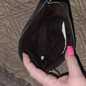 This comes with the corner zip wristlet! Both in excellent perlite condition. I used the bag 2 times and the wristlet 1.