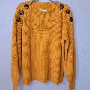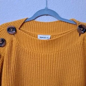 For The Republic Boatneck Chunky Yellow Sweater Large Button Boxy Size Medium