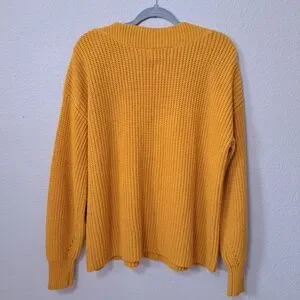 Stay cozy and stylish with this vibrant mustard yellow sweater. Featuring unique button details, it's perfect for adding a pop of color to your wardrobe.