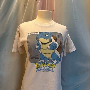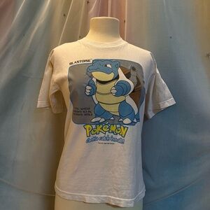 Super cool vintage Pokemon t-shirt featuring a graphic of Blastoise with a holographic background!