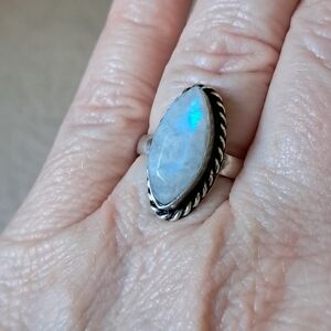 Sterling Silver Rope Twist Opalescent Moonstone Handmade Ring Size 6.5