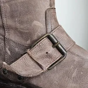 Notable features include adjustable buckle straps at the ankle and upper shaft, adding a touch of rugged elegance while ensuring a secure fit.