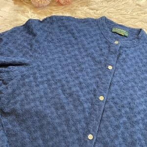 DONATING 3/9 Lauren Ralph Lauren Blue Eyelet Long Sleeve Blouse sz L