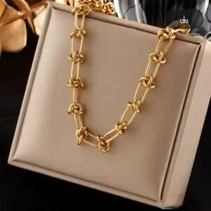 Turn heads with this stunning gold-tone barbed wire necklace, a must-have for those who love bold, modern, and edgy fashion! The intricate knotted barbed wire design adds a touch of rebellious elegance, making it the perfect accessory to elevate any look.