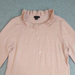 Ann Taylor Factory Sz XS Ruffle Neck Sweater Preppy Blush Pink Barbie Flawed NEW