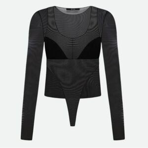 Bevza LONG SLEEVE BODYSUIT NWT black mesh Large