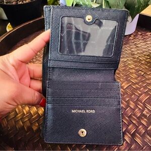 Stylish and compact, this Michael Kors wallet features a striking leopard print design. Perfect for adding a touch of wild elegance to your accessory collection.