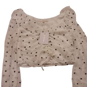 NWT Wayf women's top. this blouse is very beautiful, featuring a semisheer long sleeves and a v-neck. the little flower designs can be felt when touched super cute blouse for the hot summer days ahead 🌞
