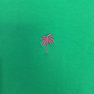 Lilly Pulitzer Vintage White Label Kelly Green Top, Embroidered Palm, Women’s XL – Preppy Pink & Green