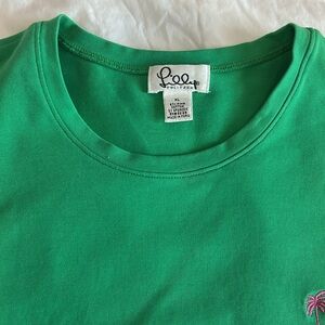 Lilly Pulitzer Vintage White Label Kelly Green Top, Embroidered Palm, Women’s XL