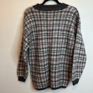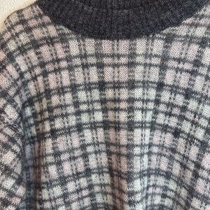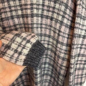 Stay warm and stylish with this plaid gray sweater. Perfect for any occasion.