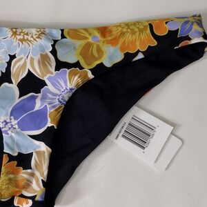 Stylish bikini bottom with vibrant floral design on a black background. Sandy Bottom Classic, size Small, New with tag.