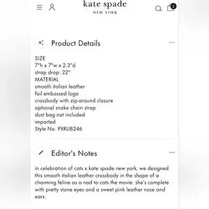 Charming pink cat face crossbody bag with gold chain inspired by Kate Spade + Cats collaboration in celebration of the movie release. This is in beautiful condition,barely used at all. The snake chain is detachable if you want to carry it as a clutch. Made of Italian leather. The eyes are gorgeous tigers eye stones and it has a sweet little nose. I'm a cat person and I find this adorable. Approximately 7"x7". Perfect for adding a playful touch to any outfit. Comes safely tucked in a Kate Spade dust bag (shown in pics). A wonderful piece to add to your KSNY collection. 🩷😻