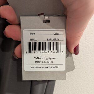 FACEPLANT DREAMS Nwt Bamboo V-Neck Nightshirt S Earl Gray Gray/Green SOFT