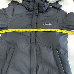 Columbia Women’s Size S Puffer Jacket w/ Removable Faux Fur Hood Color Black. Preowned. Please reference attached pictures for style, detachable faux fur trim hood, black color, condition and approximate sizing.