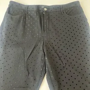 Stylish black pants with a polka dot pattern. Perfect for casual wear.