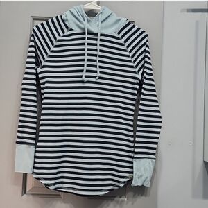 Eddie Bauer Navy Light Blue Striped Favorite Pullover Long Sleeve Hoodie Tee