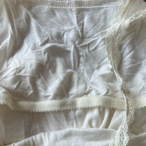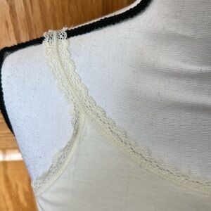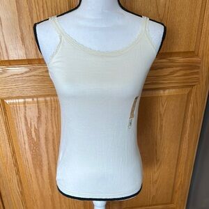 NWT Elegant cream tank top perfect for layering or wearing alone. Soft fabric ensures comfort all day. Beautiful lace on sleeves, hem and neckline. Inside has bra built in, but it’s not padded. So pretty! Smoke free and pet free home.