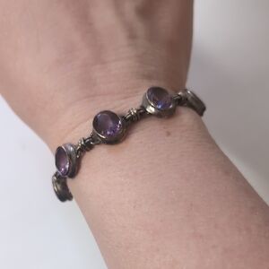 This elegant bracelet features stunning purple stones set in a classic design. Perfect for adding a touch of sophistication to any outfit.