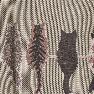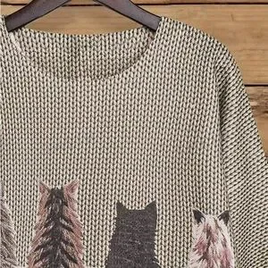 Cat Pattern Round Neck Long Sleeve Casual Pullover Sweater, Autumn/Winter