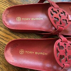 Worn only a handful of times! Beautiful blue/red Tory Burch cloud flip flops