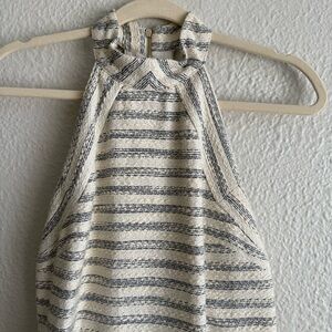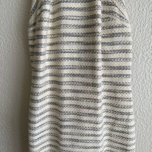Cream with blue stripe and gold tone zipper