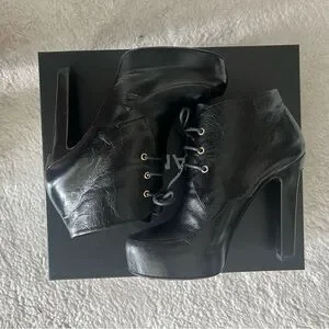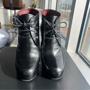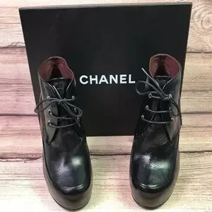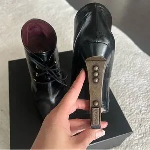 CHANEL Lacets Black Leather Lace Up Round Toe Ankle Boots - SIZE 39.5