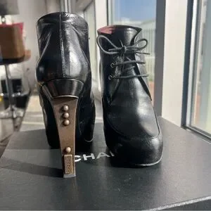Gorgeous black leather boy Chanel ankle boots. Amazing detailing. Rare and hard to find!
