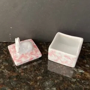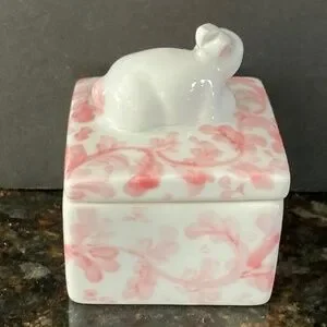 White Rabbit Top of Small Pink & White Trinket Box//Perfect For Spring & Easter