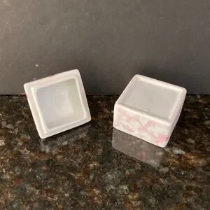Square in shape, it measures 2 1/4 inches square x 3 inches in height